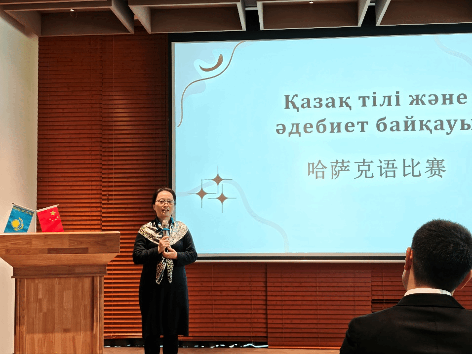 2025年12月6日,应北京哈萨克斯坦文化中心邀请,我校哈萨克斯坦研究中心主任孙芳教授、哈萨克语教师谢维宁博士出席“哈萨克语与文学”比赛。作为受邀嘉宾孙芳主任为比赛致辞并介绍北京外国语大学的哈萨克语学科建设情况,谢维宁老师受邀担任本届比赛评委。