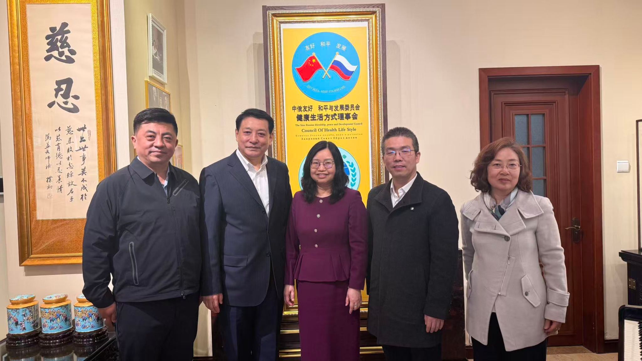 中俄友好、和平与发展委员会健康生活方式理事会中方主席梁玉师、秘书长战明热情接待了俄院一行,双方围绕人才培养、实习就业、合作共建等开展深入交流。
